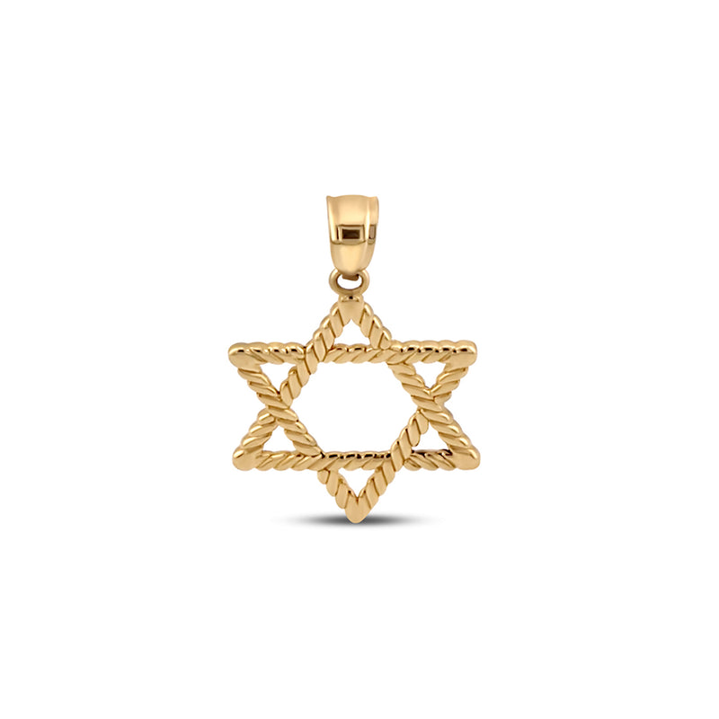 Este impresionante colgante con estrella de David empanada está elaborado en oro de 14 quilates de alta calidad, lo que lo convierte en una adición elegante y atemporal a cualquier colección de joyas. Perfecto para aquellos que desean mostrar su fe de una manera elegante y sofisticada, este colgante presenta detalles intrincados y un diseño empanizado único que seguramente llamará la atención. Ya sea que se use solo o combinado con otras piezas, este colgante es imprescindible para cualquiera que ame las joyas hermosas y significativas.