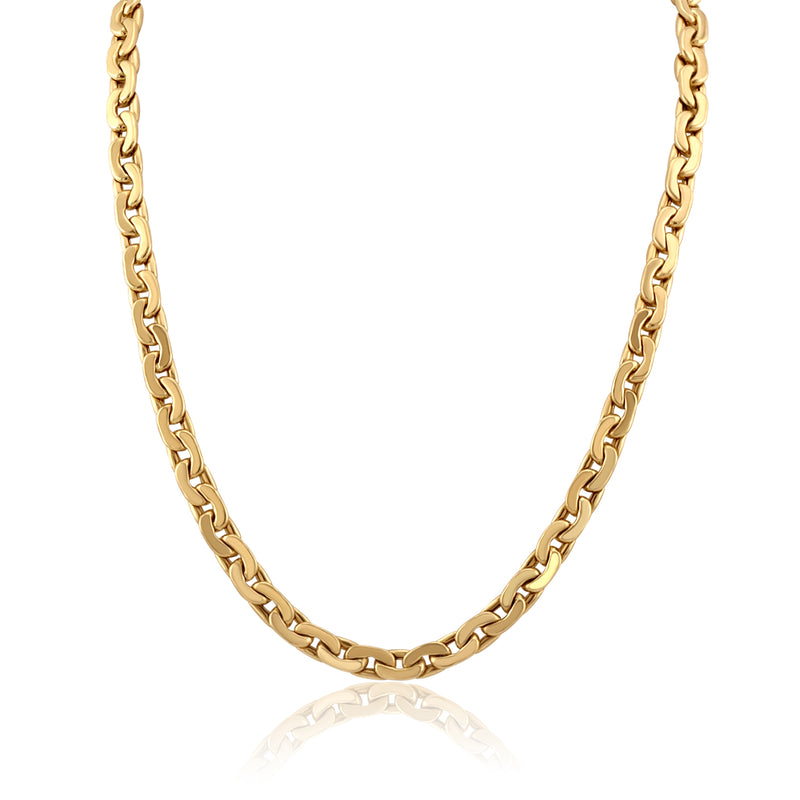 The 14k Gold flat oval chain offers a modern twist on a classic design. Crafted with precision, its flattened oval links create a sleek and contemporary look, perfect for both casual and formal wear.